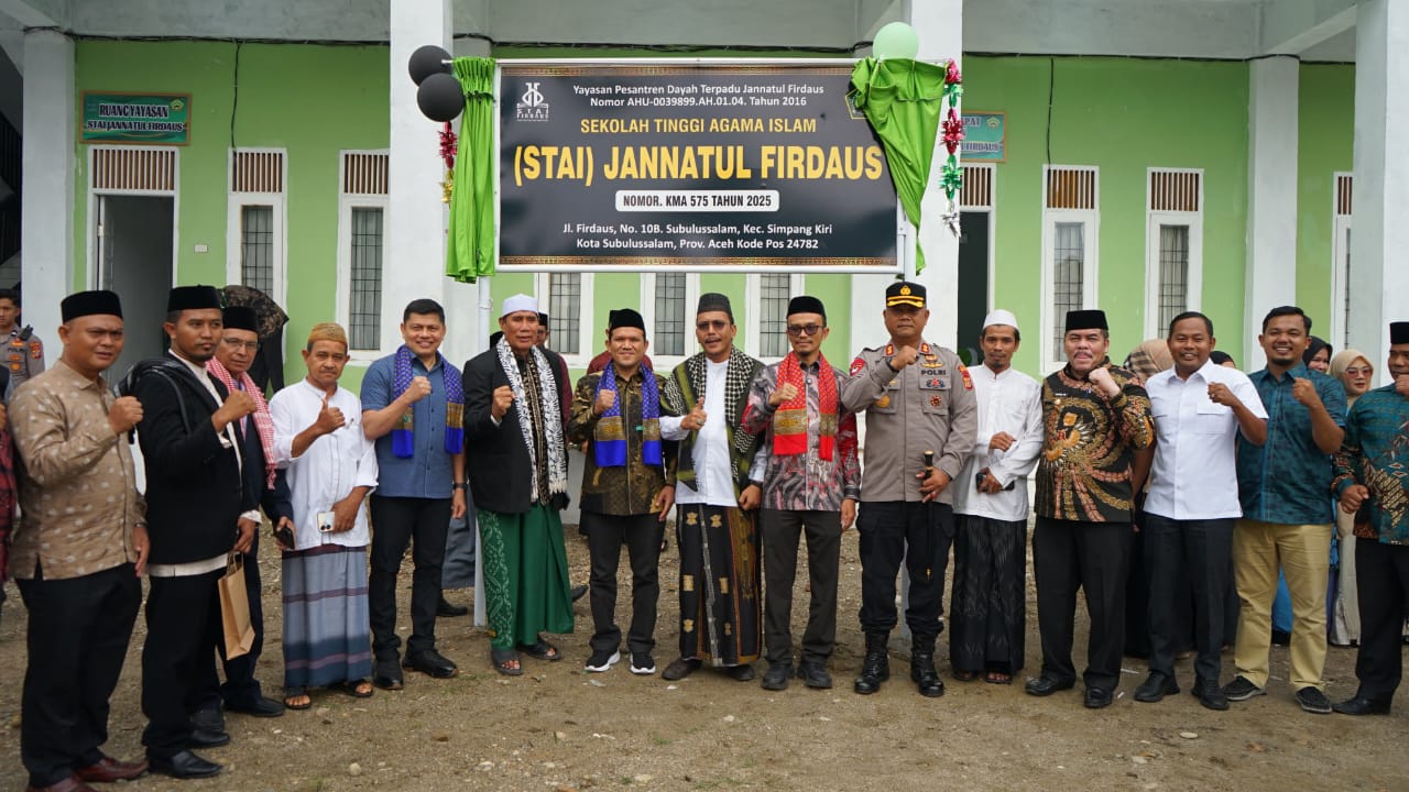 Kabar Jino | Subulussalam – Wakil Gubernur Aceh, Fadhlullah, meresmikan berdirinya Sekolah Tinggi Agama Islam (STAI) Jannatul Firdaus di Kota Subulussalam, Sabtu (13/9/2025). Kehadirannya didampingi istri, Mukarramah Fadhlullah, yang juga Ketua Staf Ahli TP PKK Aceh.