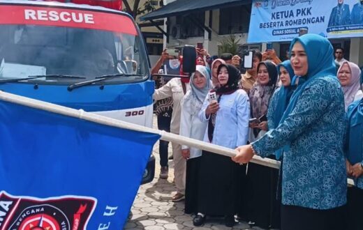 Kabar Jino | Banda Aceh – Ibu Gubernur Aceh, Marlina Muzakir yang juga di dampingi Ibu Wakil Gubernur Mukarramah Fadhullah serta anggota PKK melepas pengiriman bantuan masa panik bagi korban banjir di tiga kabupaten, yakni Aceh Jaya, Aceh Barat, dan Nagan Raya. Pelepasan tersebut berlangsung di halaman Dinas Sosial Aceh, Rabu (22/10/2025), pukul 10.30 WIB.